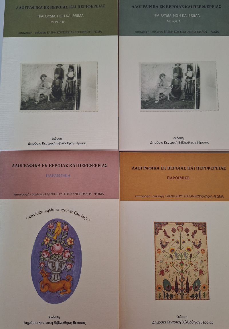 Η Δημόσια Κεντρική Βιβλιοθήκη Βέροιας και το Λύκειο των Ελληνίδων (Παράρτημα Βέροιας) διοργανώνουν την Τετάρτη 6 Μαΐου 2026, στις 6 το απόγευμα, στην αίθουσα εκδηλώσεων της Δημόσιας Κεντρικής Βιβλιοθήκης της Βέροιας την παρουσίαση της νέας, ολοκληρωμένης έκδοσης του τετράτομου έργου της βραβευμένης από την Ακαδημία Αθηνών Ελένης Κουτσογιαννοπούλου Ψωμά, με τίτλο: Λαογραφικά εκ Βεροίας και Περιφερείας. Παραμύθια – Παροιμίες – Τραγούδια ήθη και έθιμα, που εκδόθηκε από τη Δημόσια Κεντρική Βιβλιοθήκη της Βέροιας.