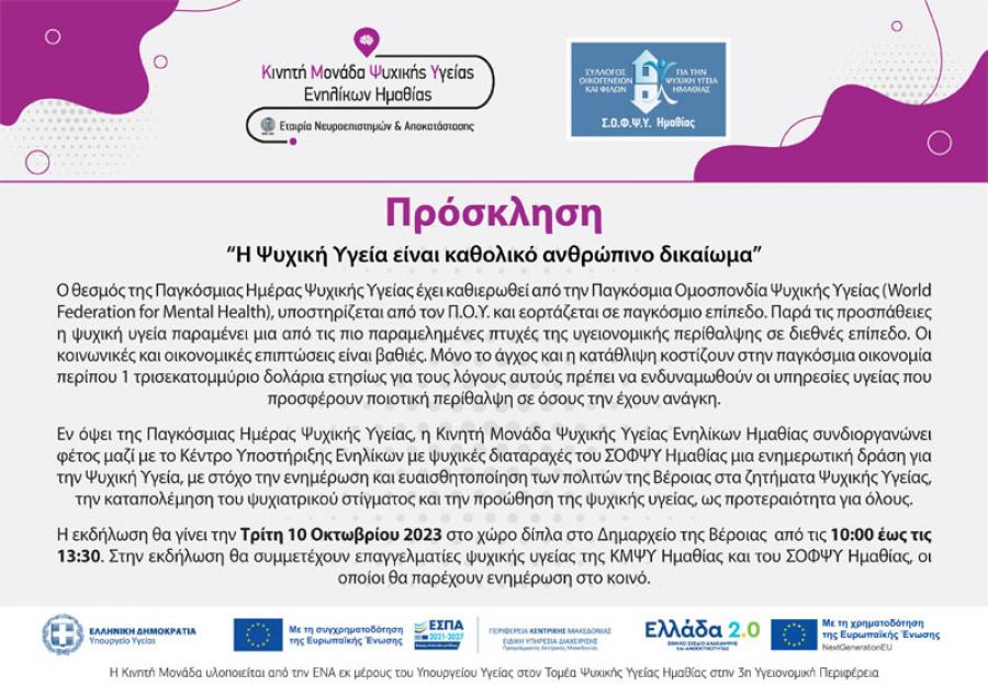 Την Τρίτη στη Βέροια δράση για την Ψυχική Υγεία
