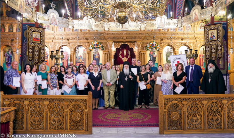 Στο τέλος πραγματοποιήθηκε η επίδοση των διπλωμάτων στους συμμετέχοντες στα σεμινάρια πρώτων βοηθειών που διοργάνωσε η ενορία της Παναγίας σε συνεργασία με τον Ελληνικό Ερυθρό Σταυρό και την εκπαιδεύτρια του κ. Ελένη Γραμματικοπούλου.